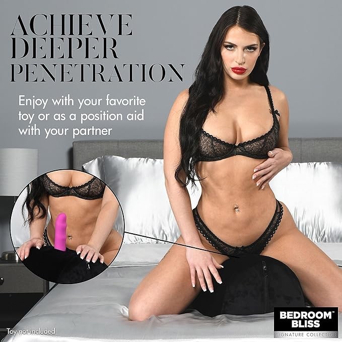 Bedroom Bliss Love Toy Cushion for Men, Women & Couples. Great for Sexual Positioning & Deep Penetration, Saddle-Style Mount with Toy Pocket. High-Density Foam. Easy to Clean Covers. 1 Piece, Black