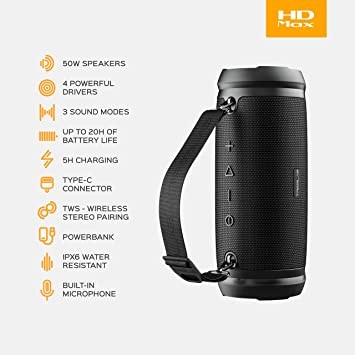 Loud Volume Bluetooth Speaker - 50W, 20H Battery, Power Bank, TWS, IPX6 Waterproof | Loud Portable Speaker with Deep Bass | Wireless Outdoor Speaker with Type-C Connector and Strap
