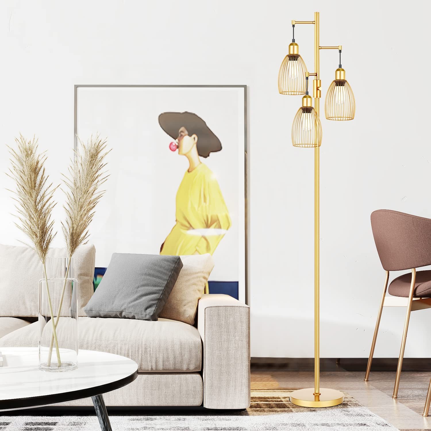 Nintiue Dimmable Floor Lamp, 3 x 800LM LED Edison Bulbs