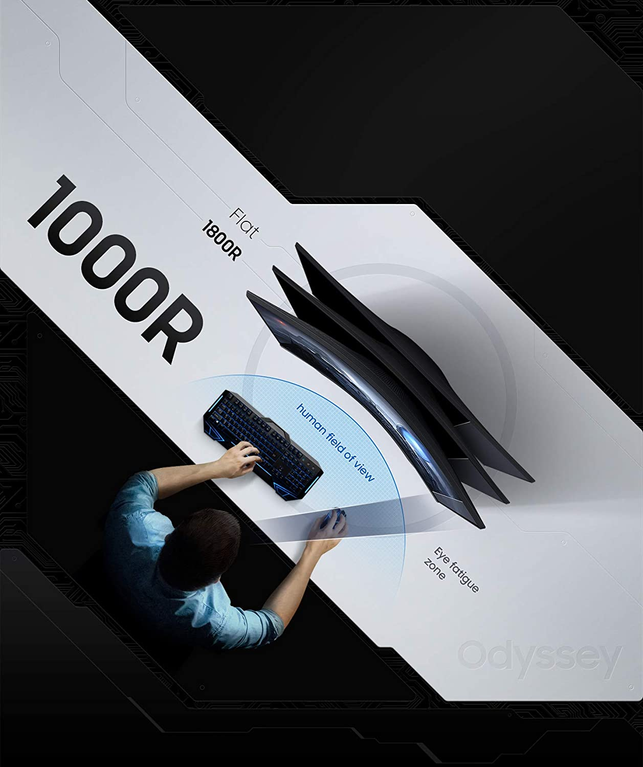 • UNMATCHED IMMERSION: Get your head in the game with Odyssey’s 1000R curved panel, which matches the curvature of the human eye for maximum immersion and minimal eye strain