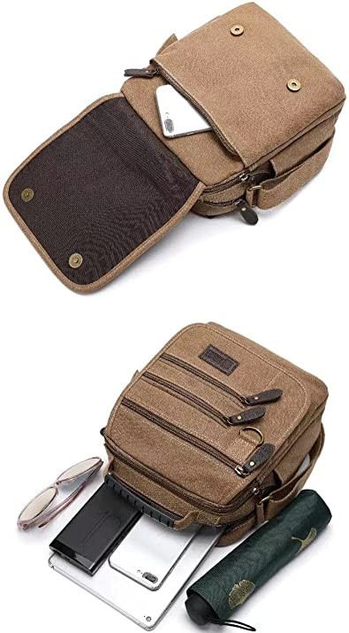 Sunsomen Men's Bag Canvas Shoulder Bag Small Postman Messenger Bag Work Bag Retro Multifunction