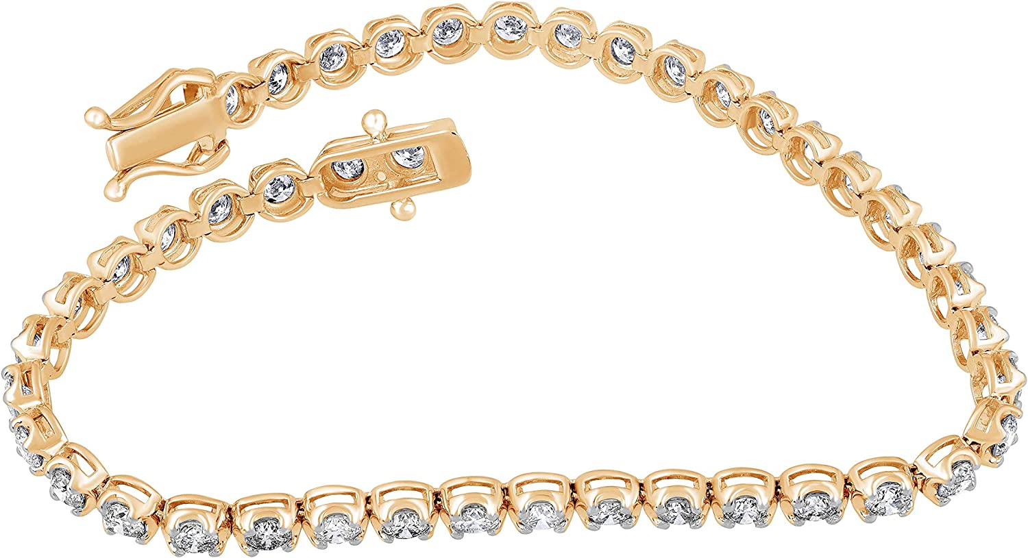 TJD Women's IGI Certified 3.5 Carat Natural Diamond Bracelet in 14K Yellow Gold (G-H Colors, I1-I2 Clarity) Classic Diamond Tennis Bracelet Diamond Jewelry Gift